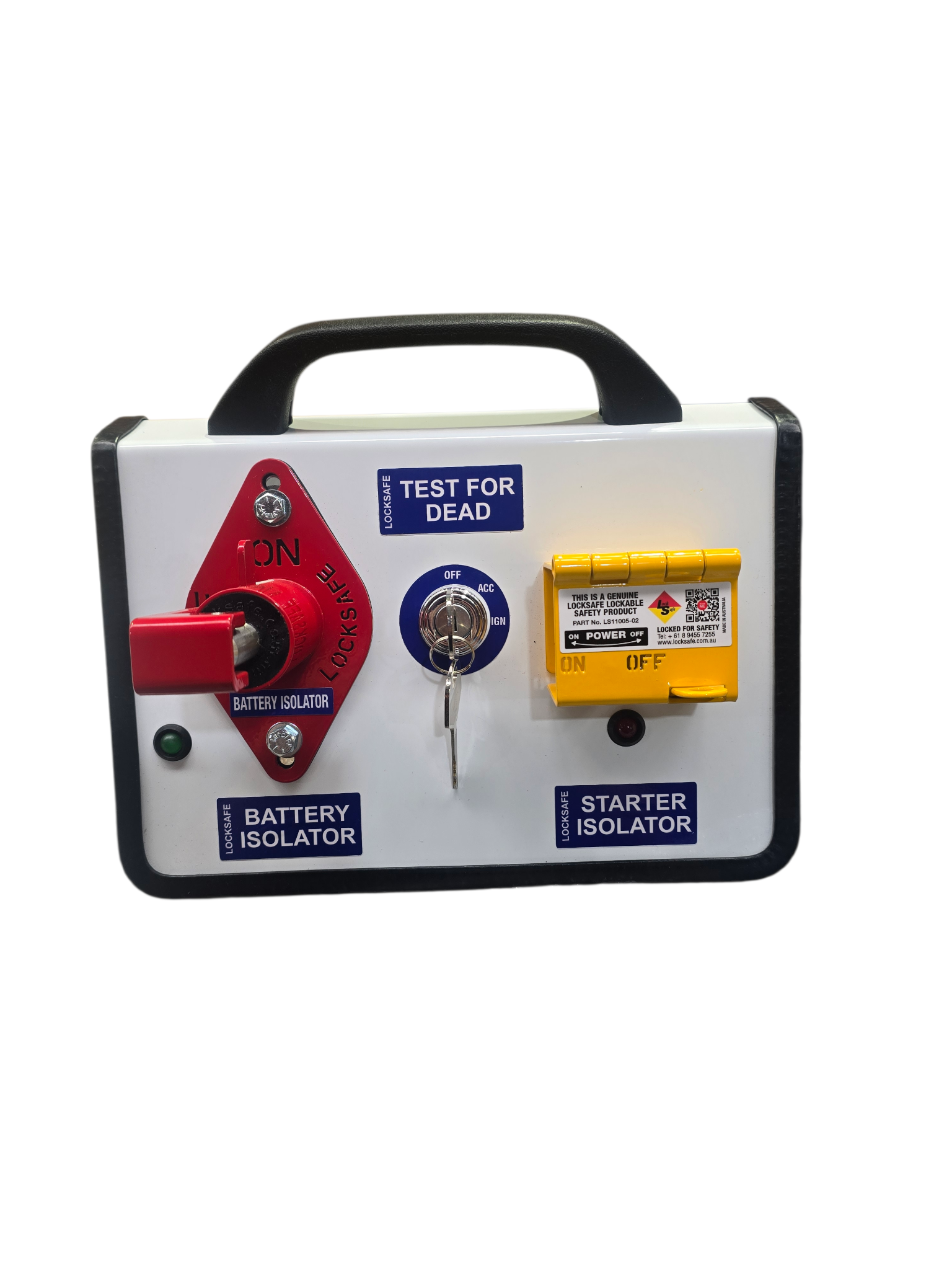 Material: 2mm Stainless Steel Colour: Silver Overall Size: 89mm x 36mm x 2mm Weight: 3.9kg Training Board which includes 2 common Locksafe Isolation brackets. LED’s fitted with battery to simulate vehicle.
